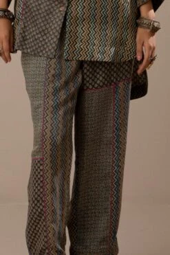 - African print georgette embroidered jacket with crepe bustier and short pants