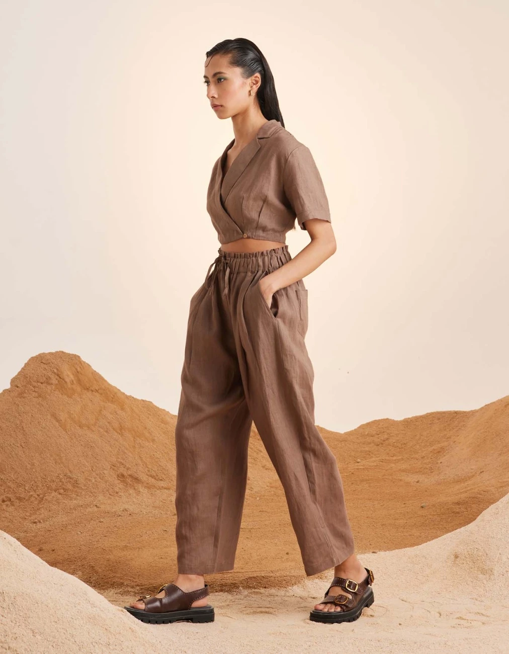- Made in pure handwoven Linen fabric the Overlap Crop top features a button fastening on the side of the top