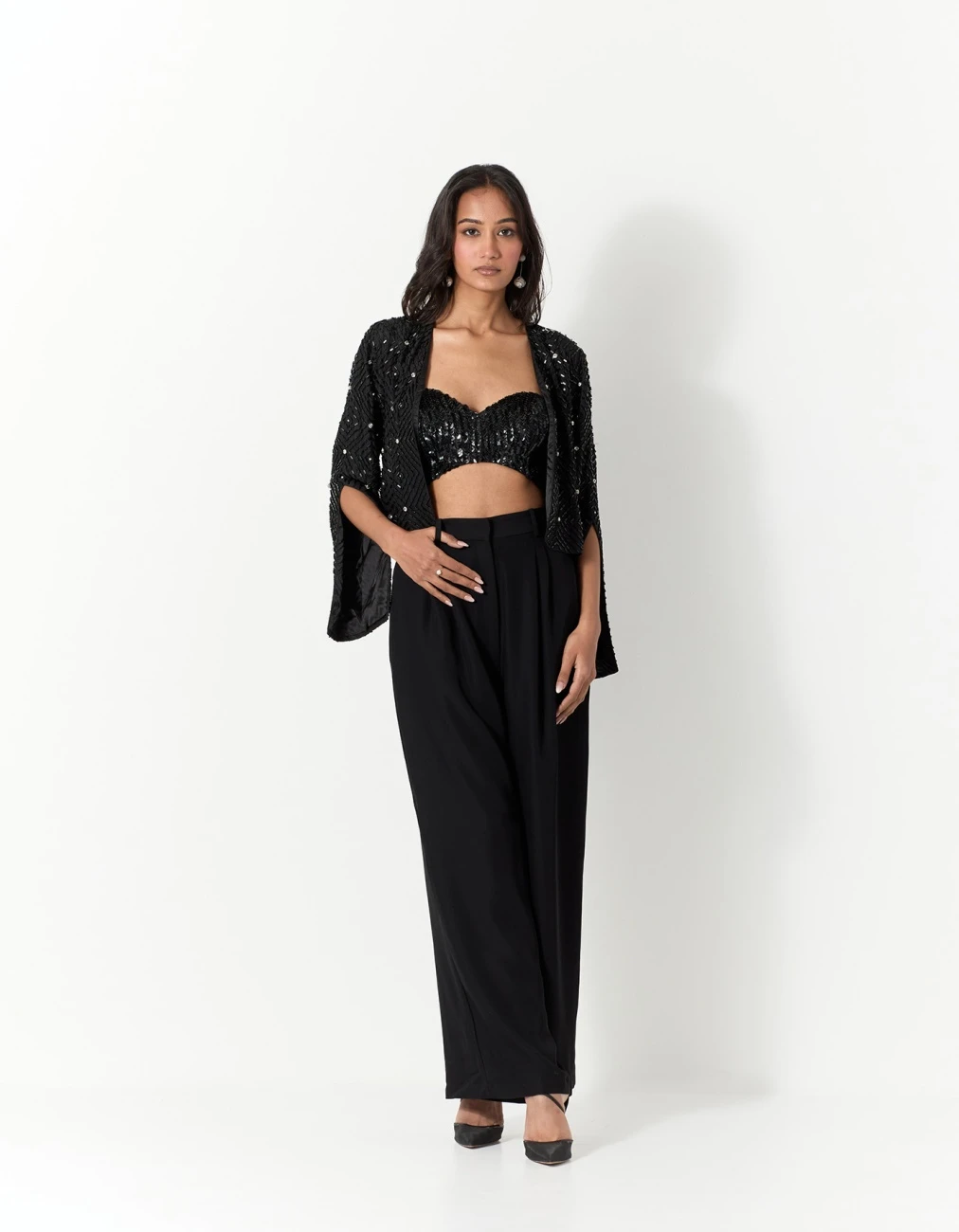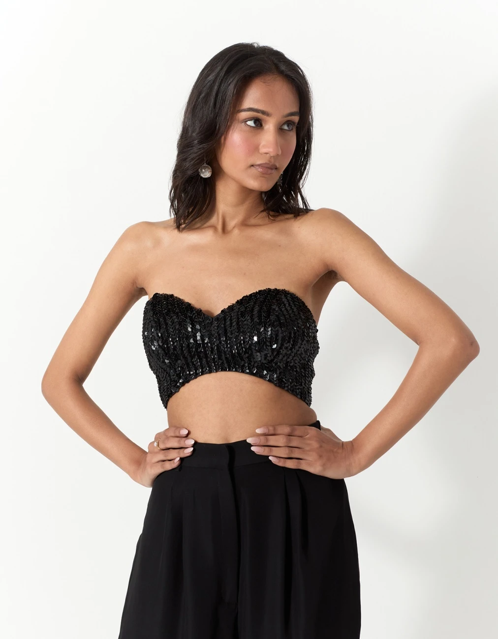 - Corset Bustier which is embroidered with Goldsequins in the front and black sequins at the back. The blouses closes at the back with hooks.