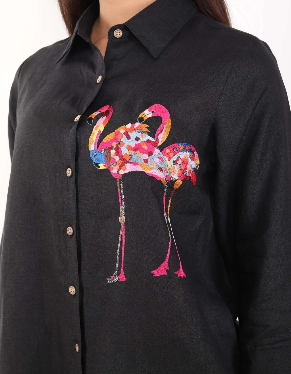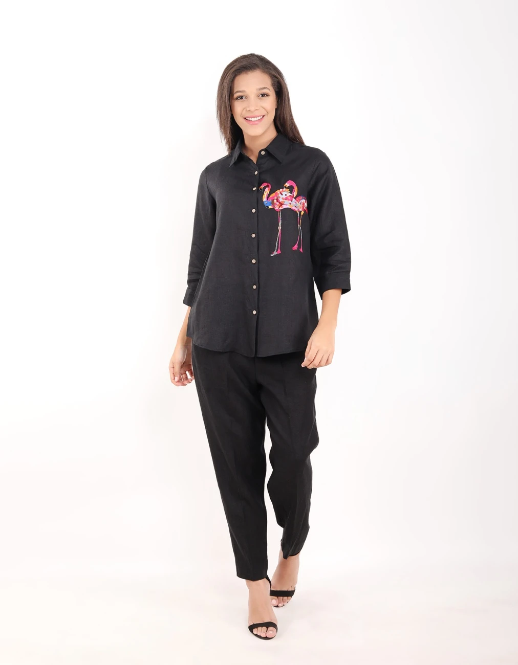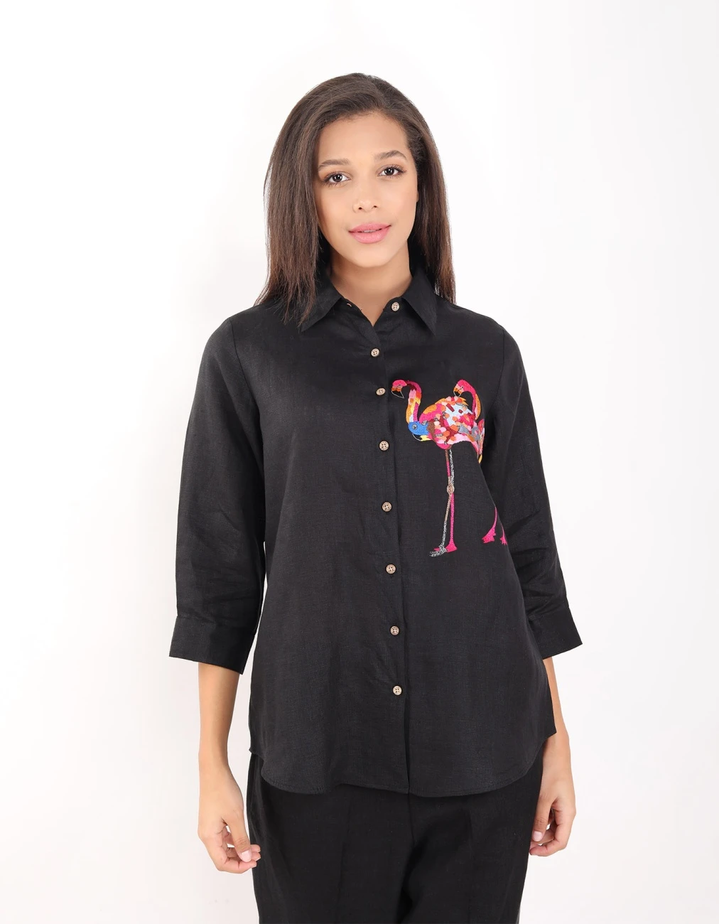 - Black Flamingo Embroidered Shirt