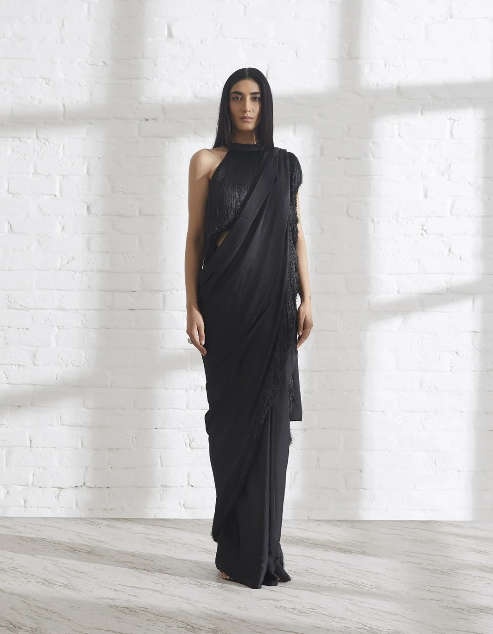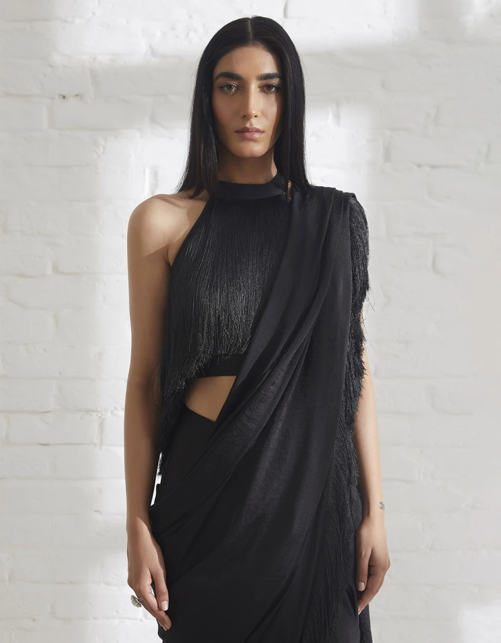 - A halter neck style Halter Fringe Top with a layer of fringe. A fun and flirty piece that moves with you. Pair it with the draped skirt or saris for a festive look.