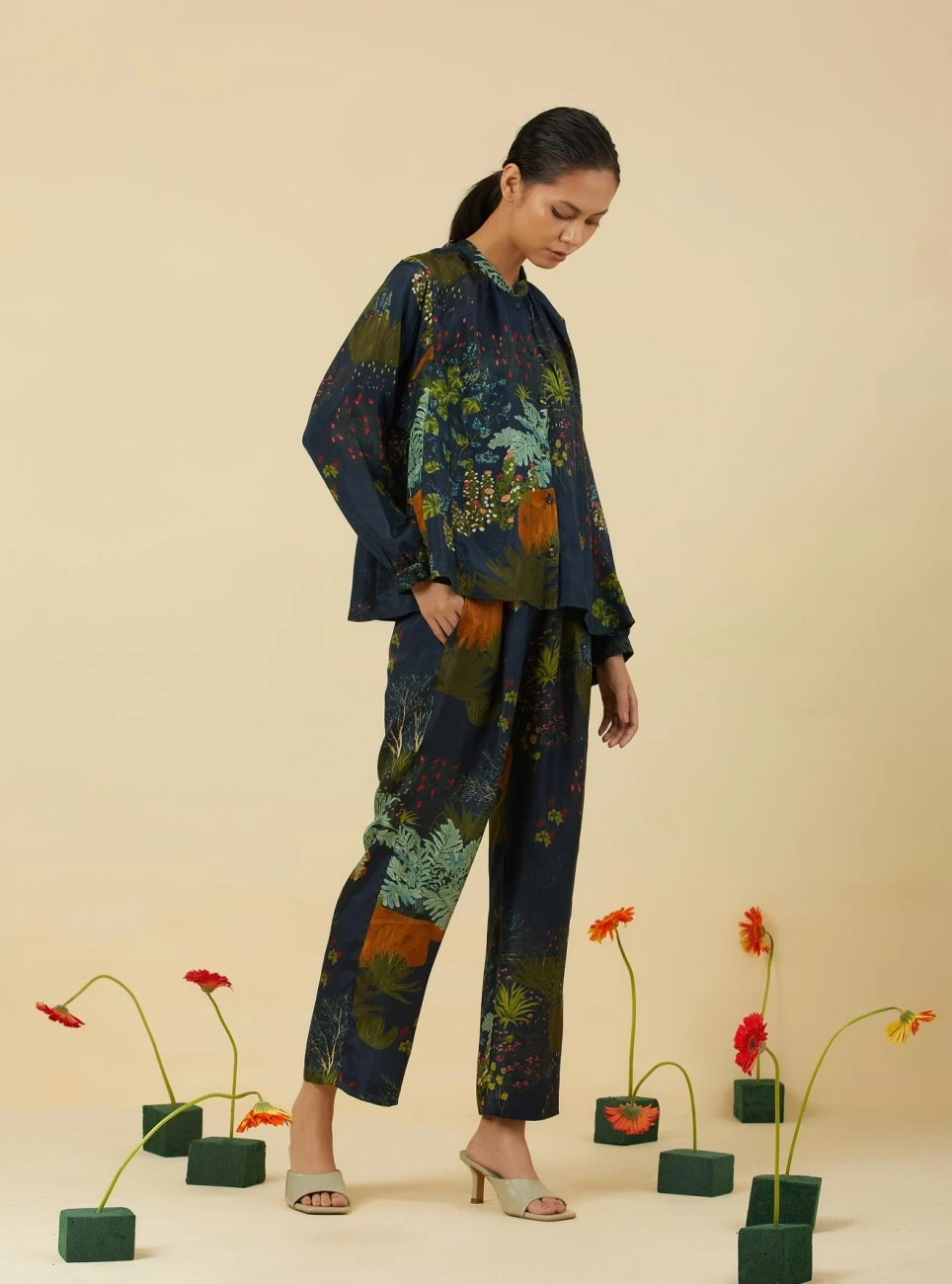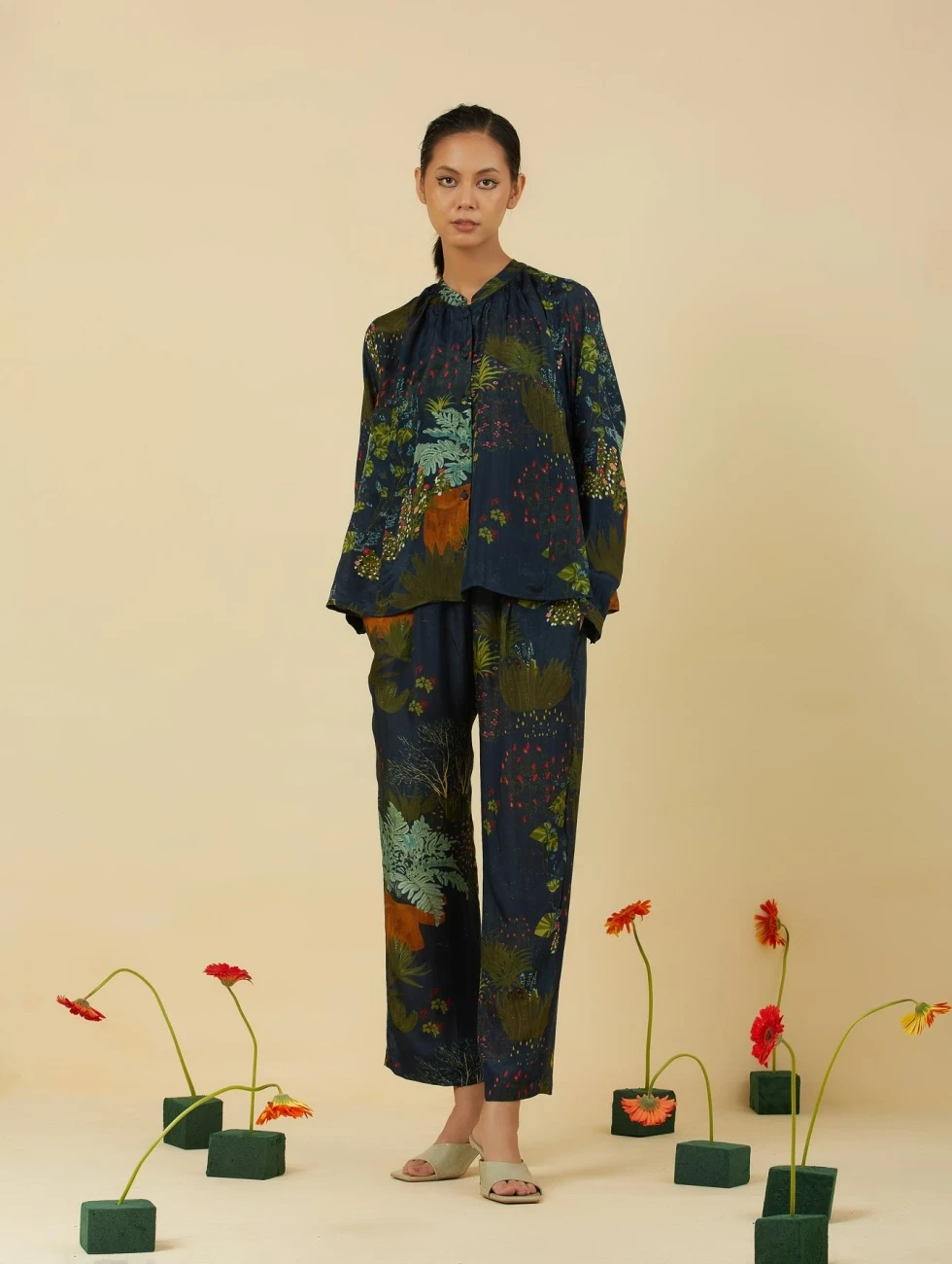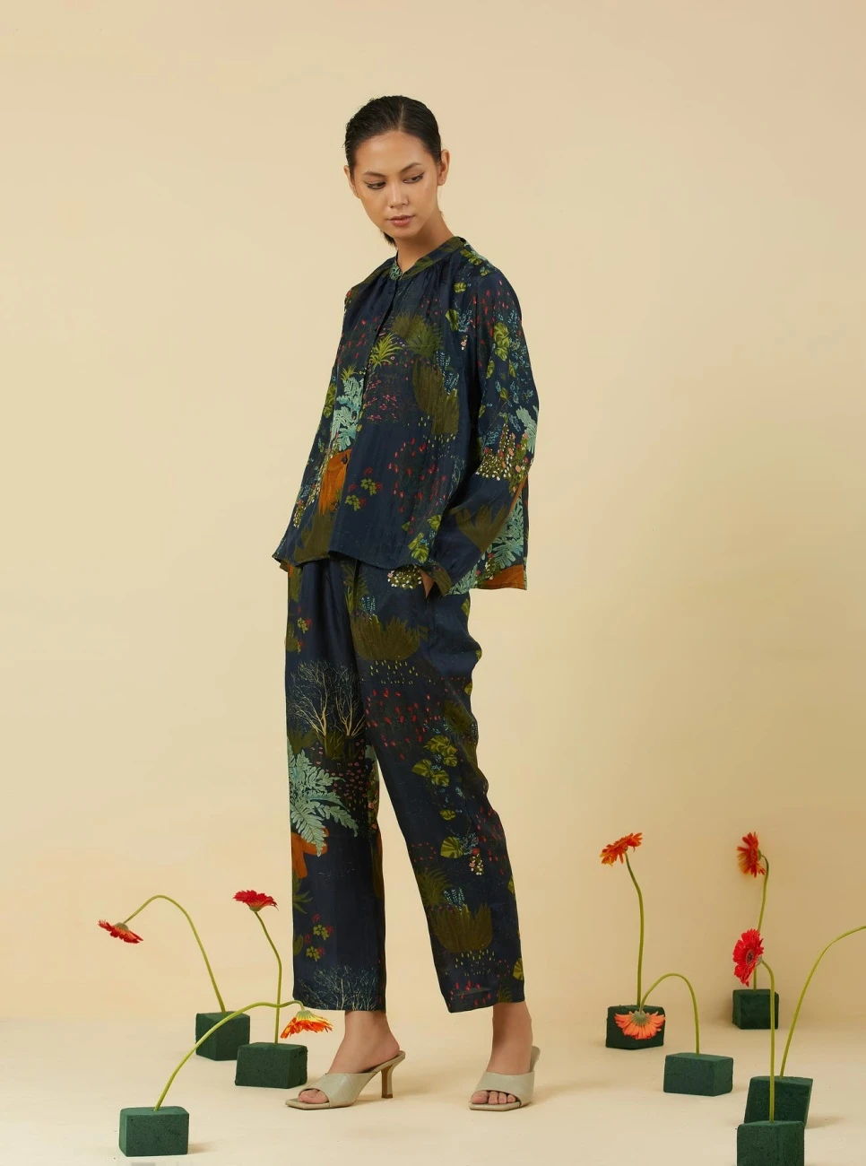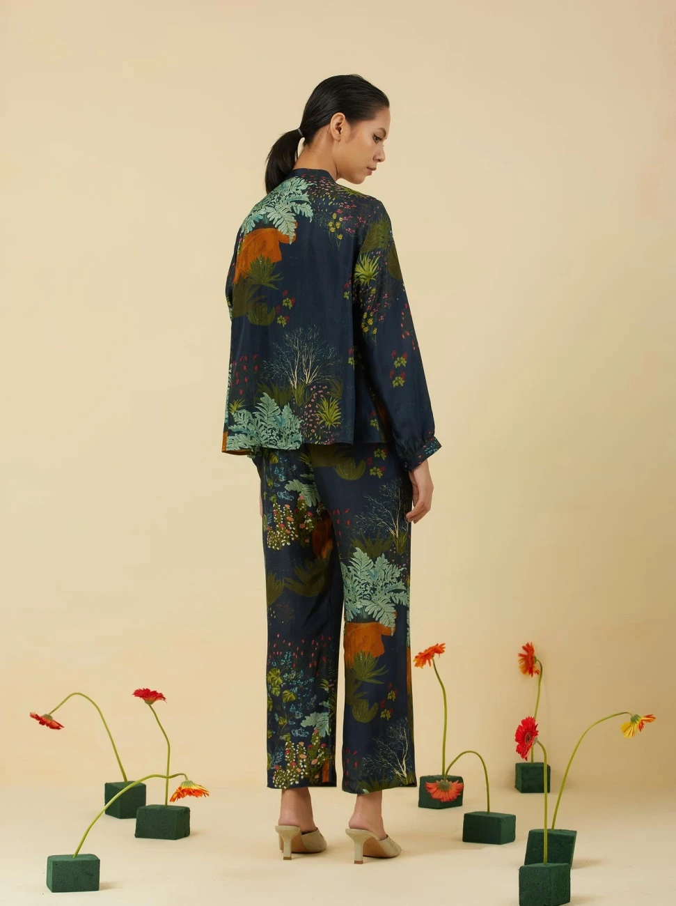 - A digital printed straight fitted button-down shirt with chinese collar and full sleeves