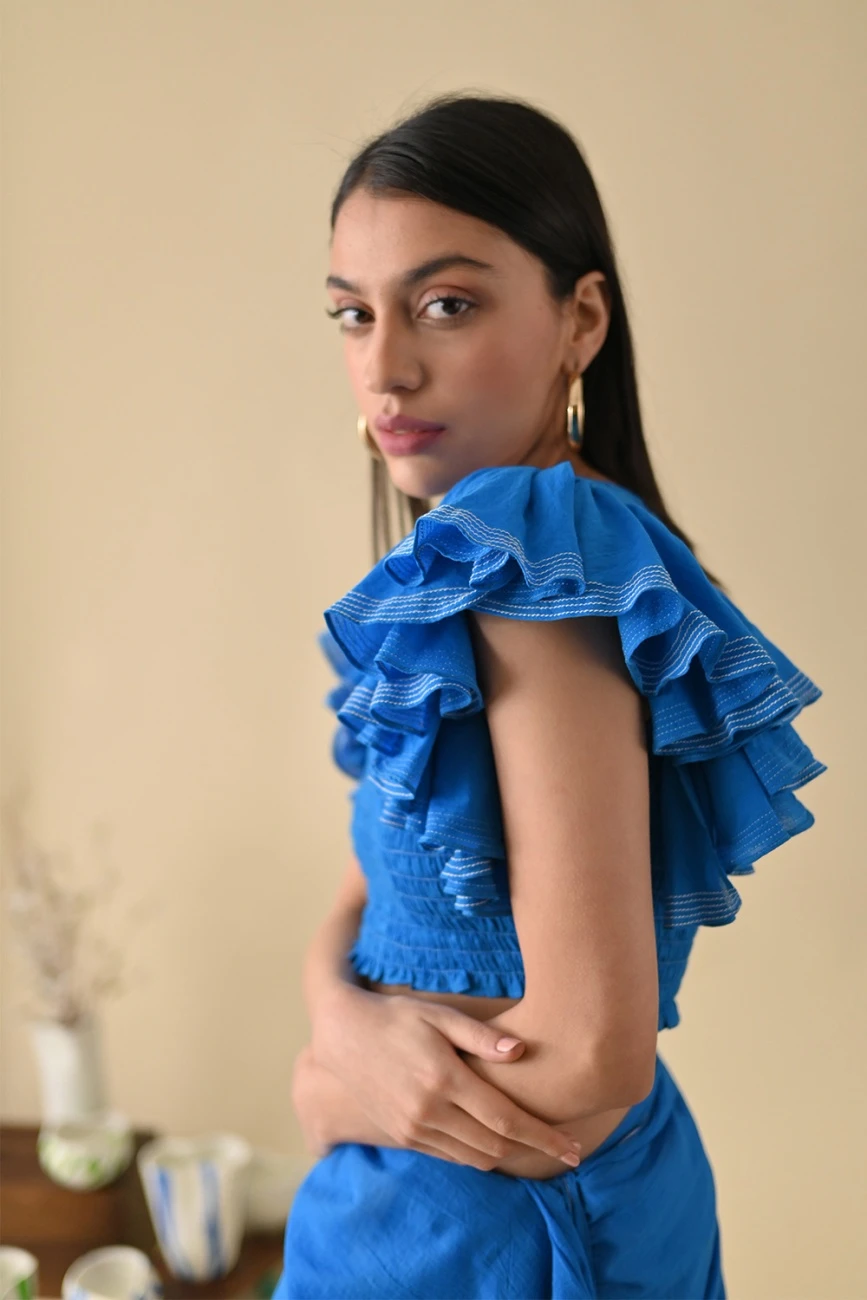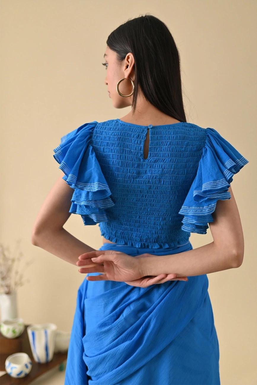- Solid coloured blouse with an elastic smocking detail in front and back