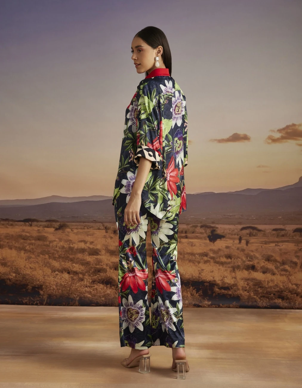 - Bow Tie Collar Printed Top