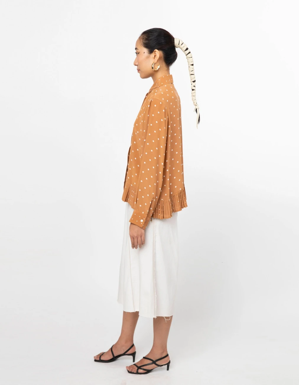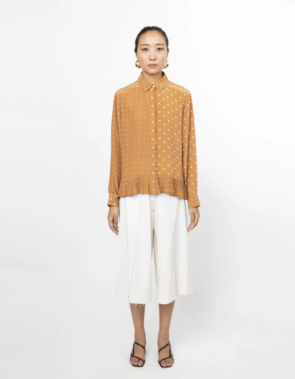 - Featuring Fin shirt in 100% silk featuring grid print, pleated hem detail and a front placket