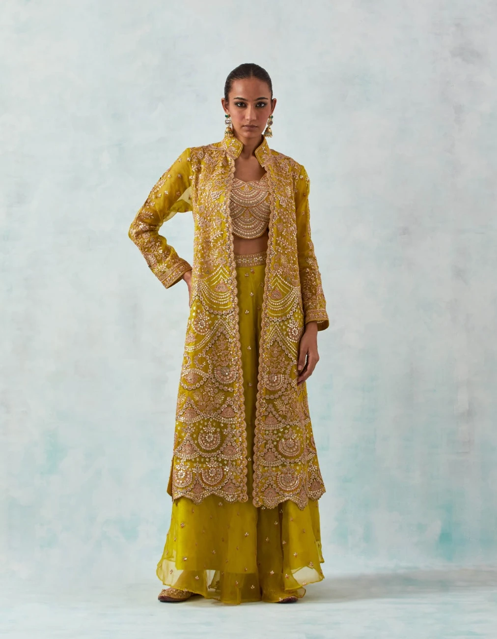- Fabric – Jacket-silk organza blouse-silk dupion plazzo-silk organza dupatta-silk organza