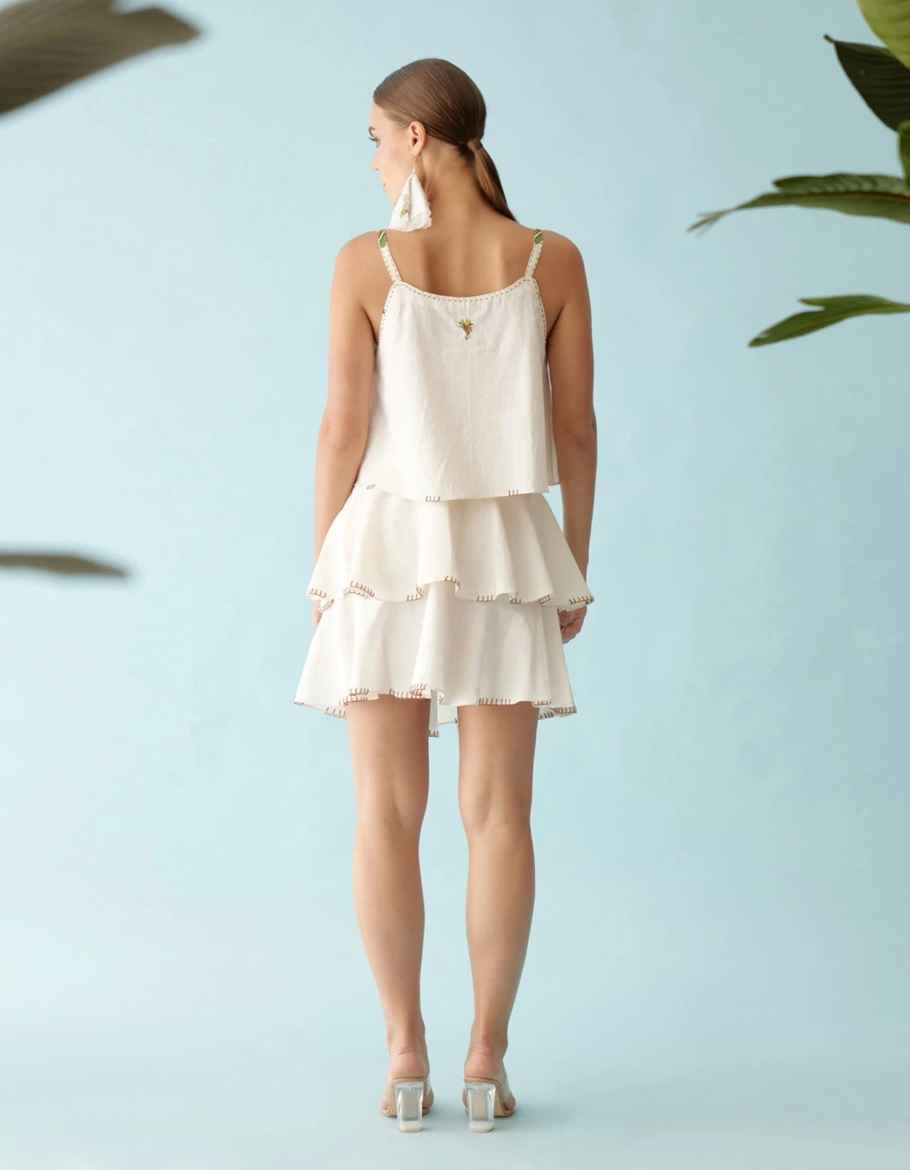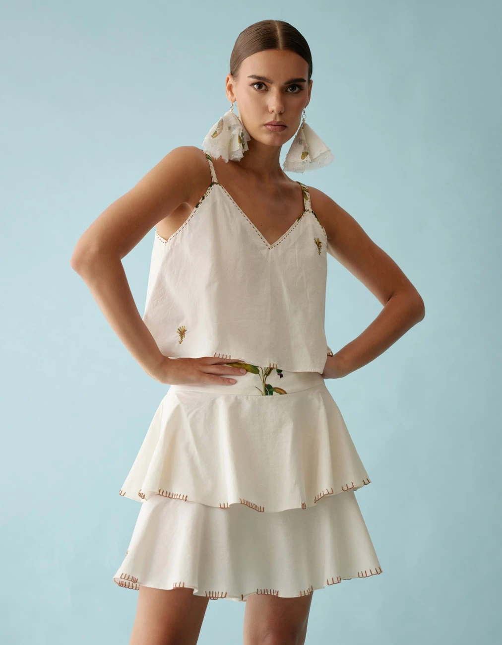 - Cream cami crop top with hand-stitched detail and banana tree applique in 100% cotton