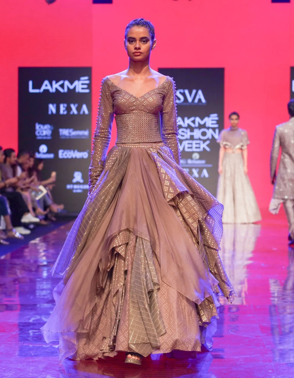 Ornate aari embroidery on sharp, power-dressing classics make up SVA’s fashion week collection