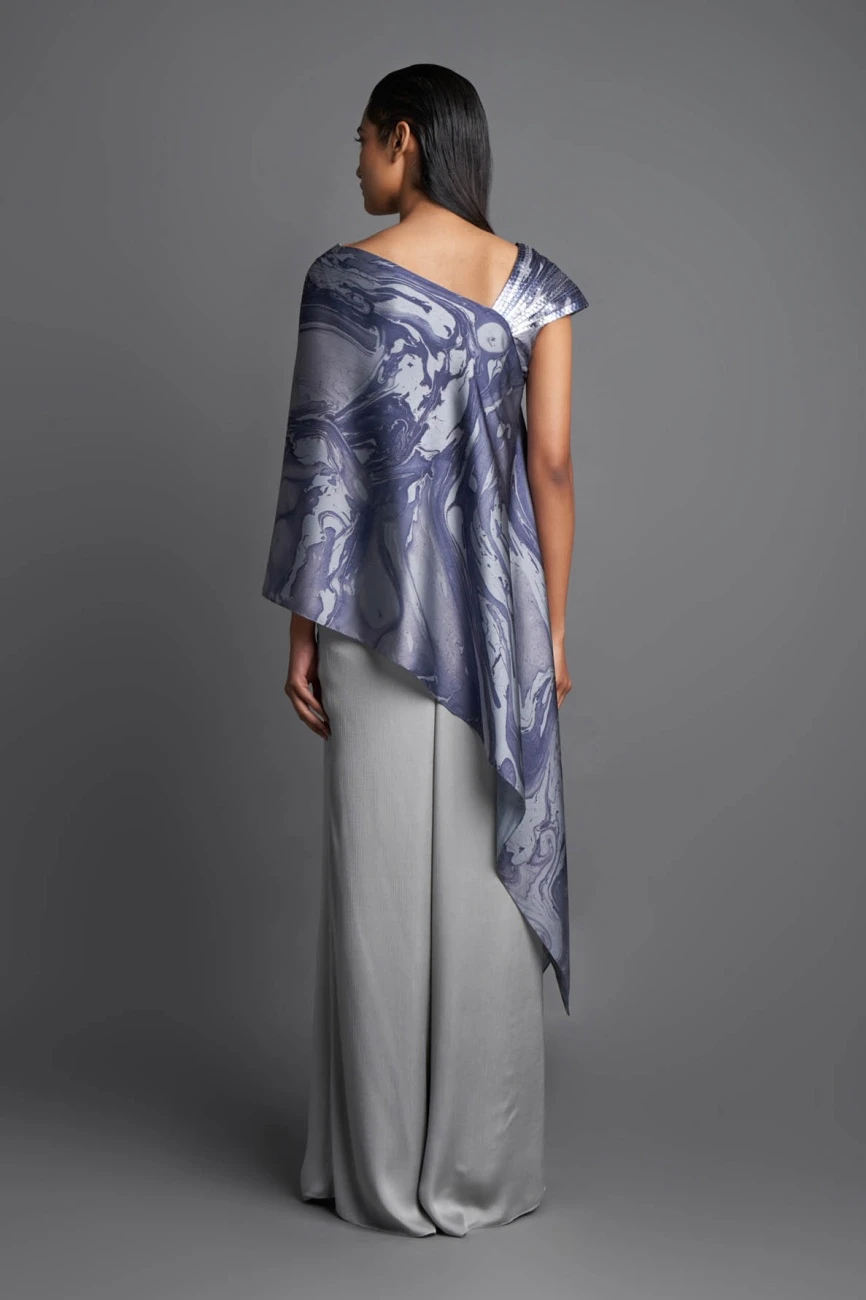 - Asymmetric marbled top with hand woven metallic polymer moulded sleeve