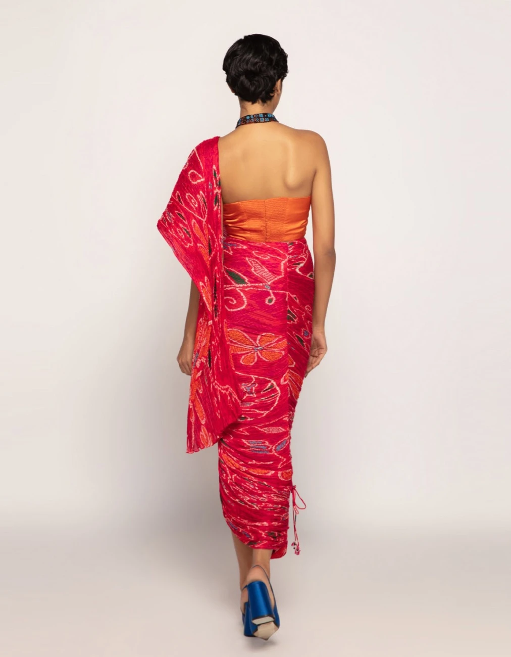 - Blouse : Halter Style Blouse With Hand Embroidered Mirrors And Thread Work Neckline Detailing