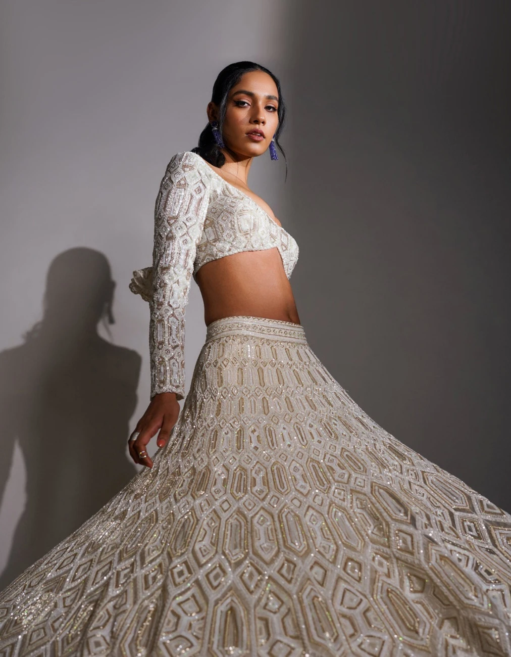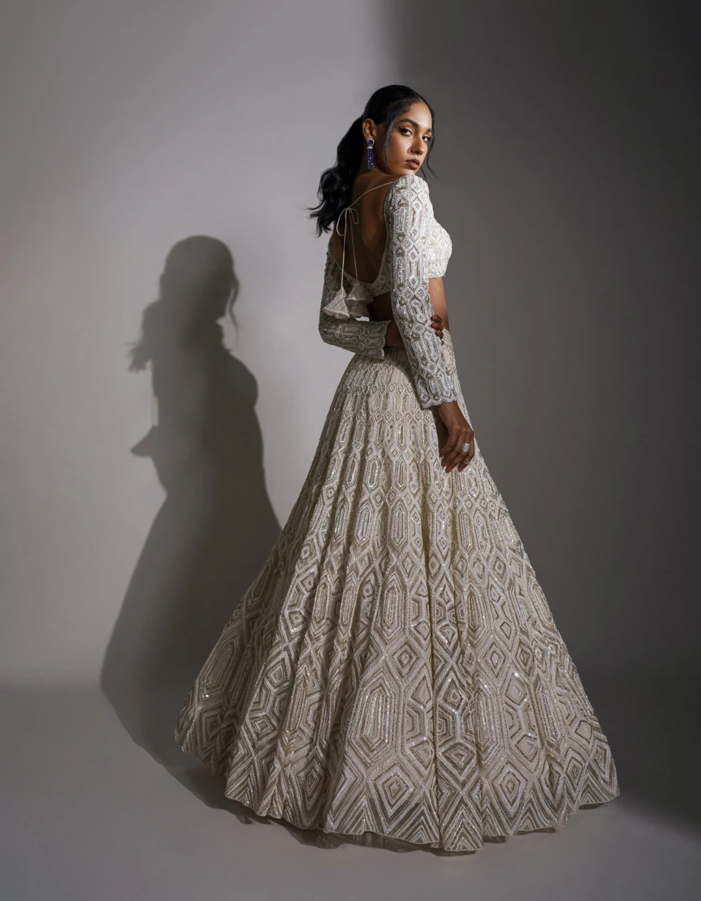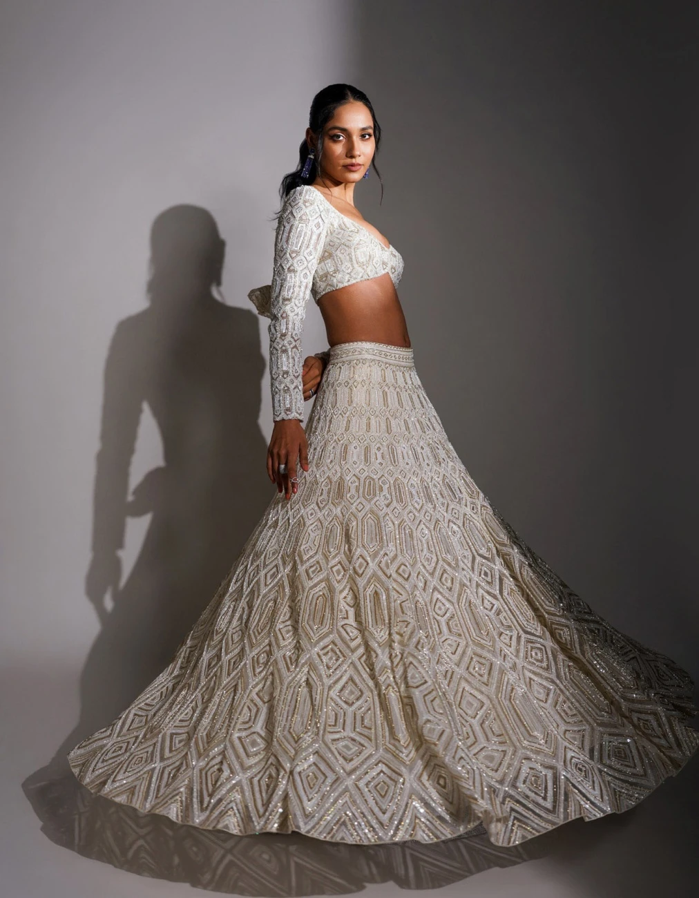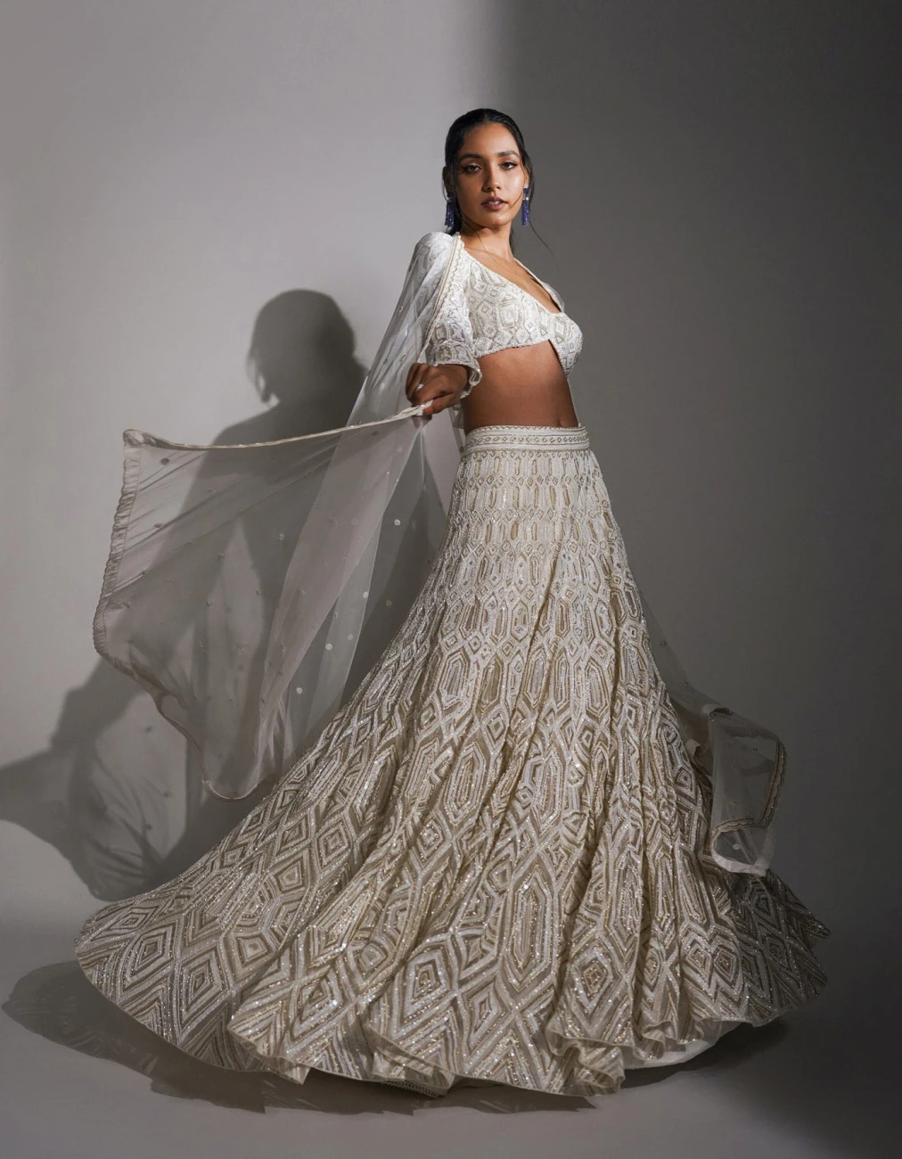 - Ivory and gold tesalated geometric design lehenga