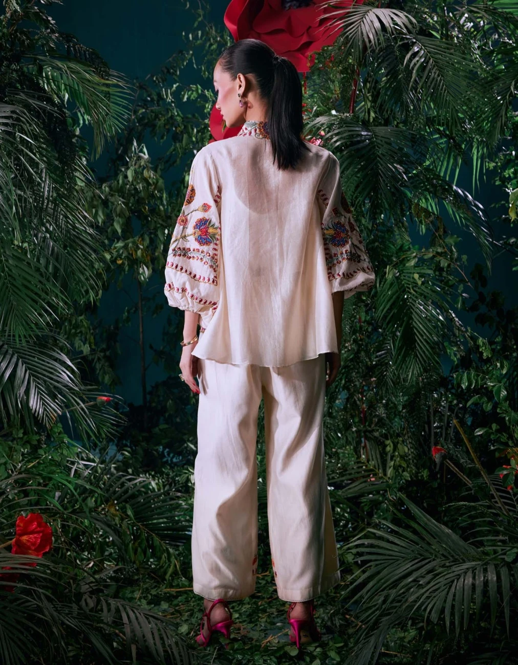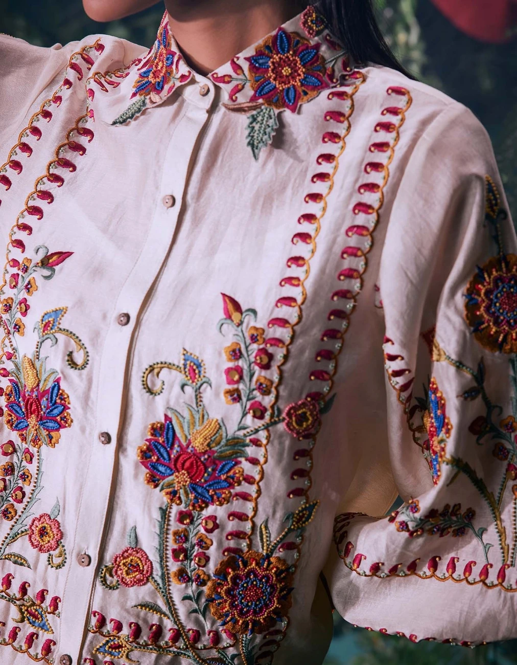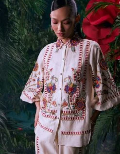 - Ivory Chanderi Multicolour Thread Work And Beadwork Shirt