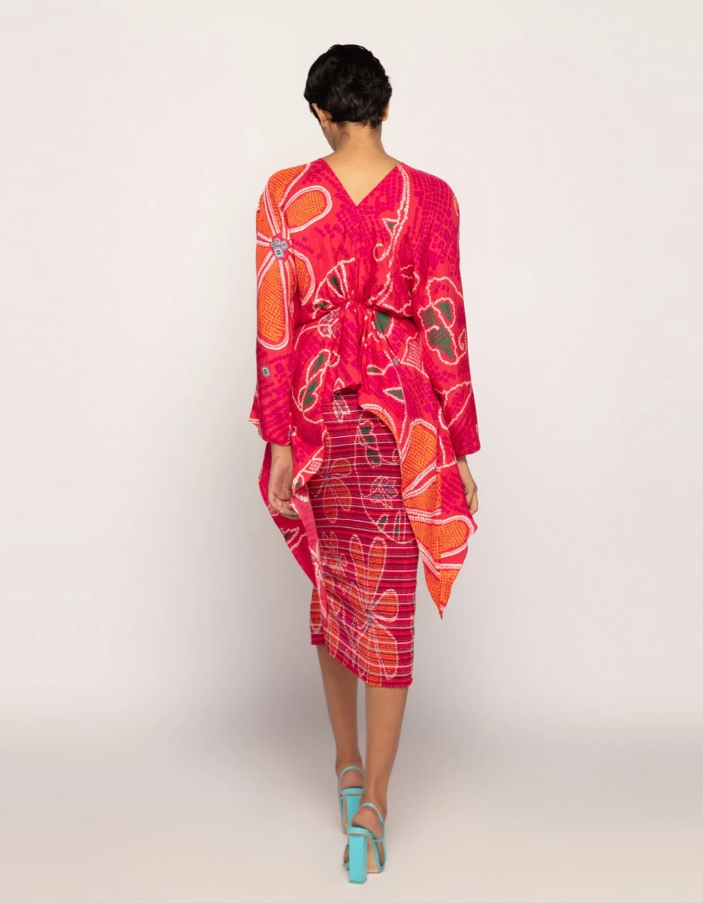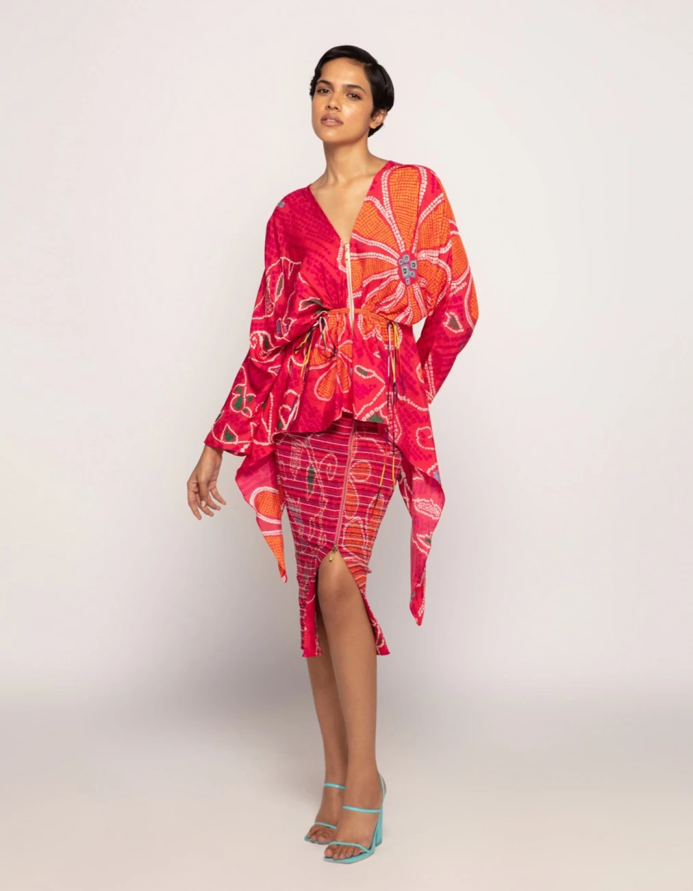 - Blouse : Marigold Bandhani Asymmetric Blouse With Drawstring Waist And Zipper Detailing