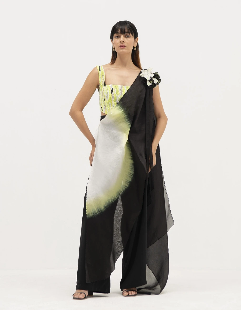 - Top – Bamberg silk, tafetta and scuba , Saree pants – Georgette twill and organza