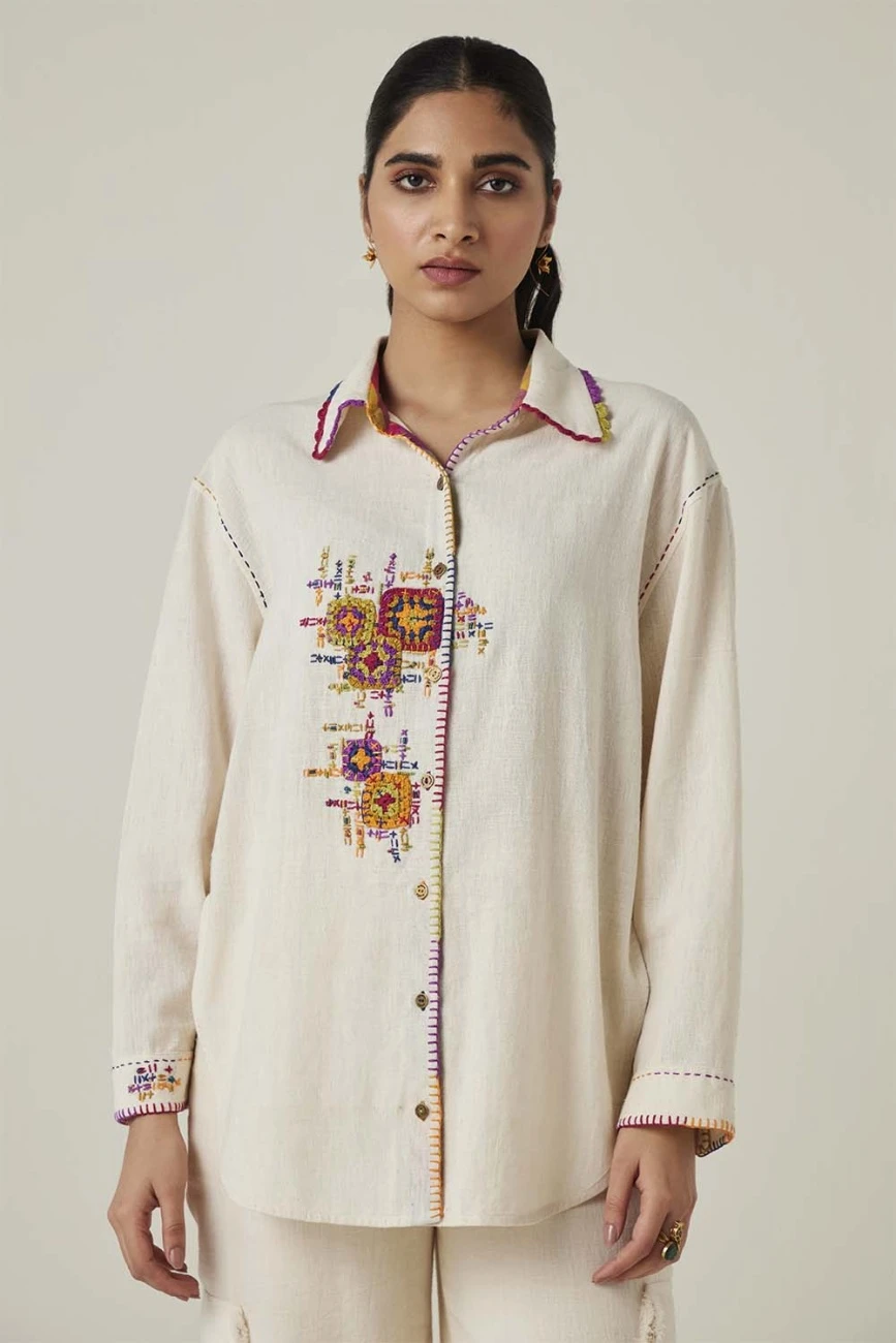 - Gul-zaar crop shirt is crafted with handwoven khadi