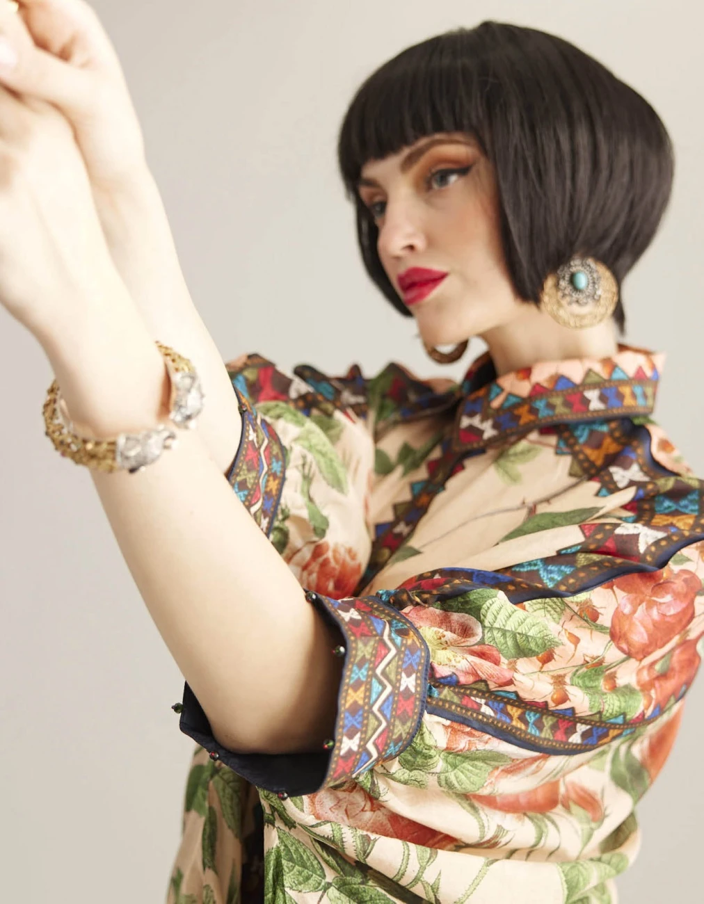 - Circular gathered sleeve shirt with cuff and collar