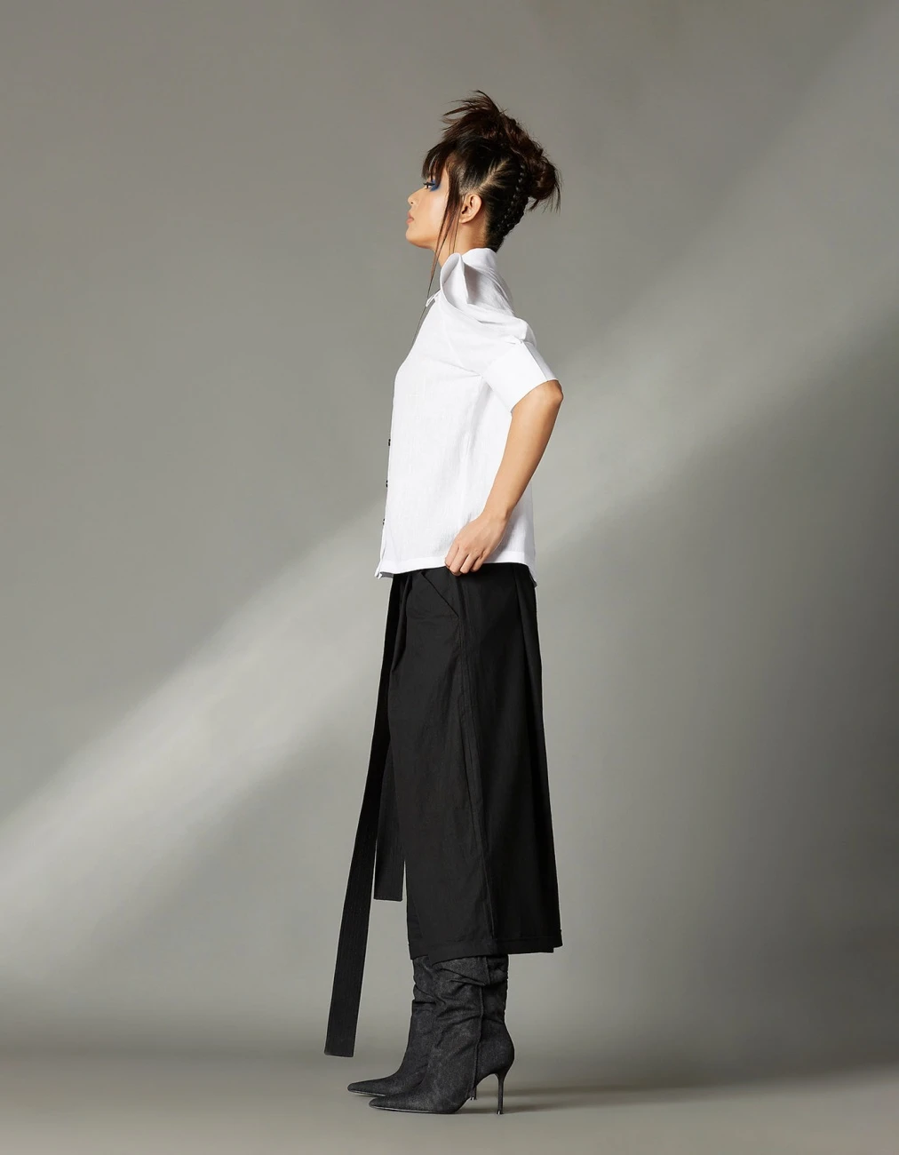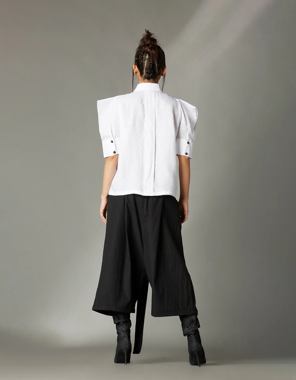 - Shirt With Power Shoulder Sleeves, Regular Collar And Box Pleat At The Back