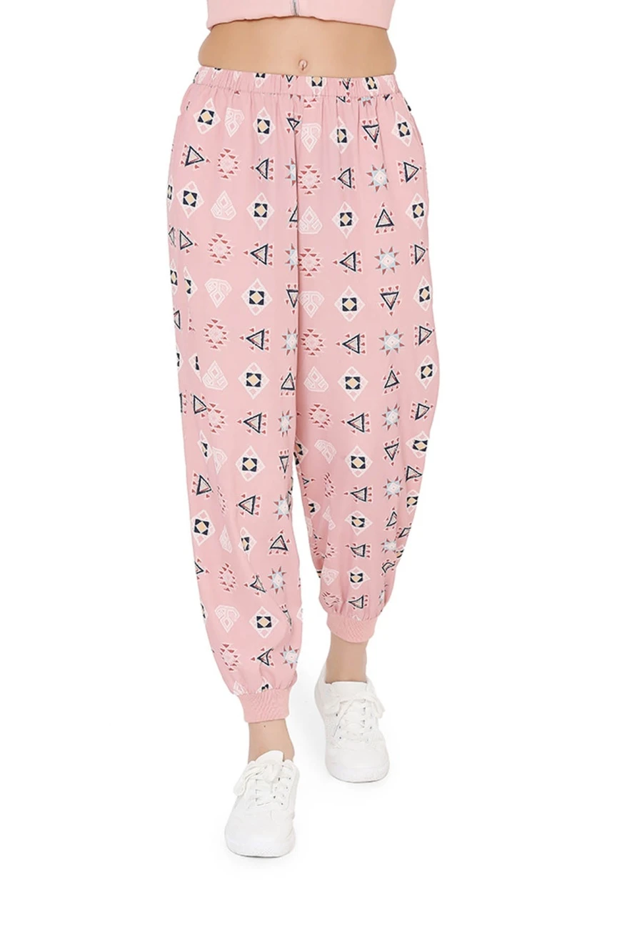 - Art crepe jogger pant with colourful doris, tassels and rib detailing