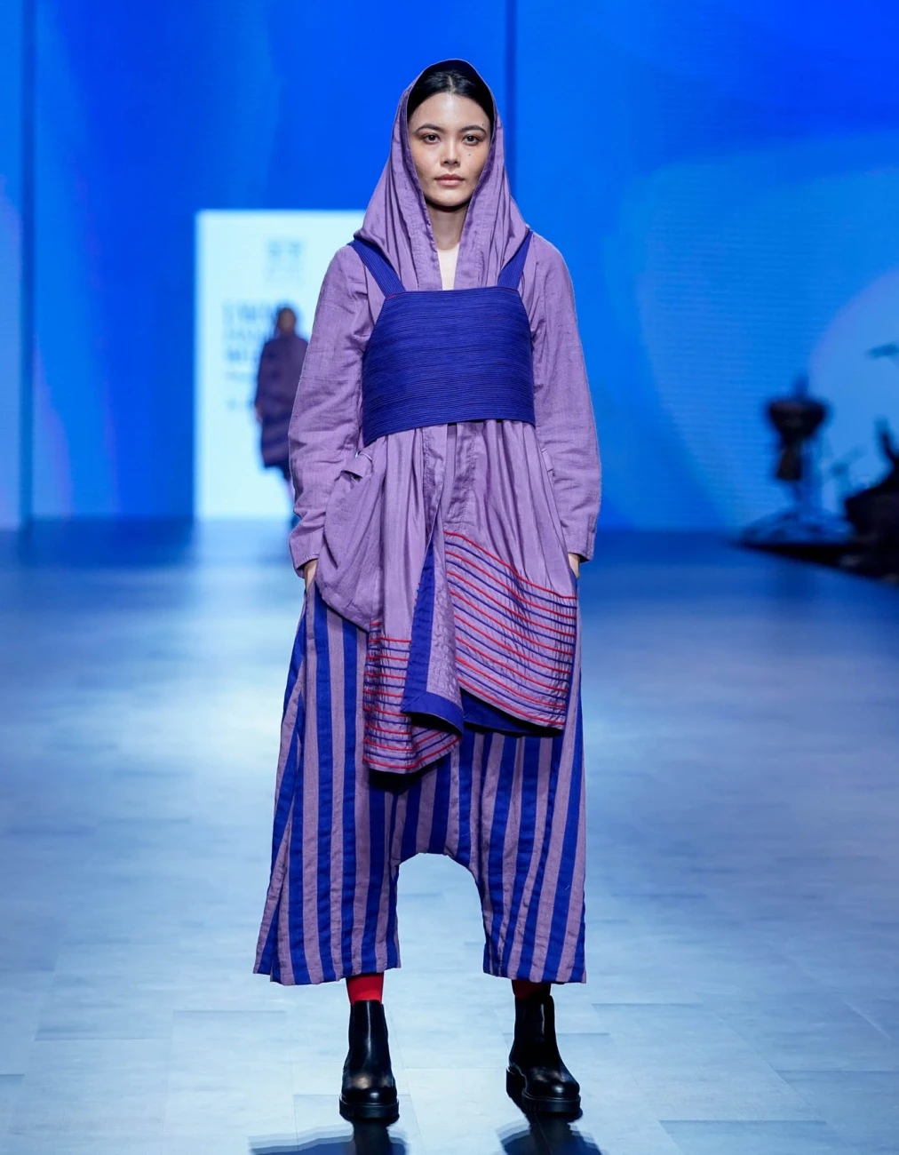 - Purple and navy dropa pants