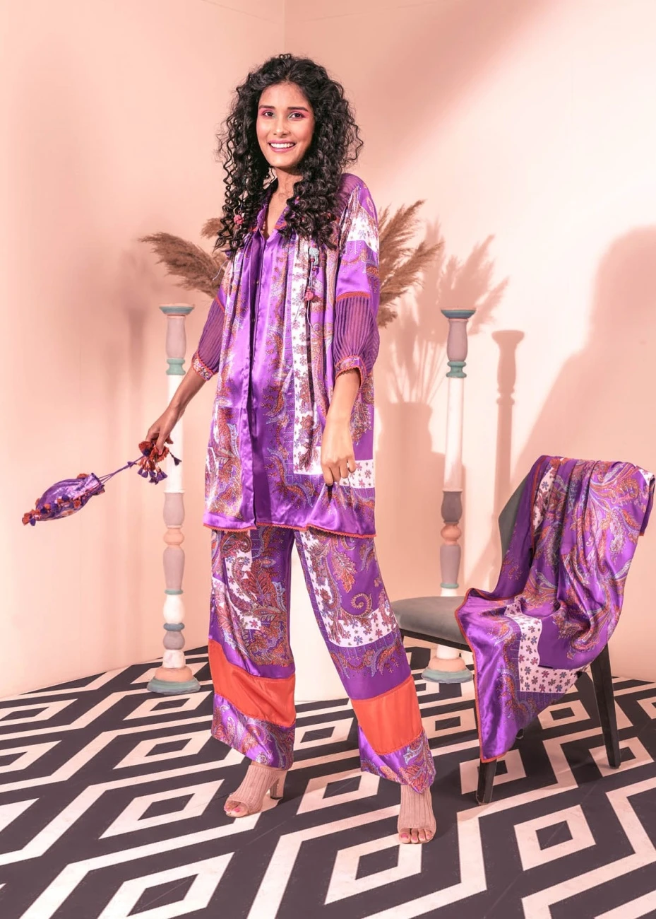 - Front open printed collar shirt with jute detailing