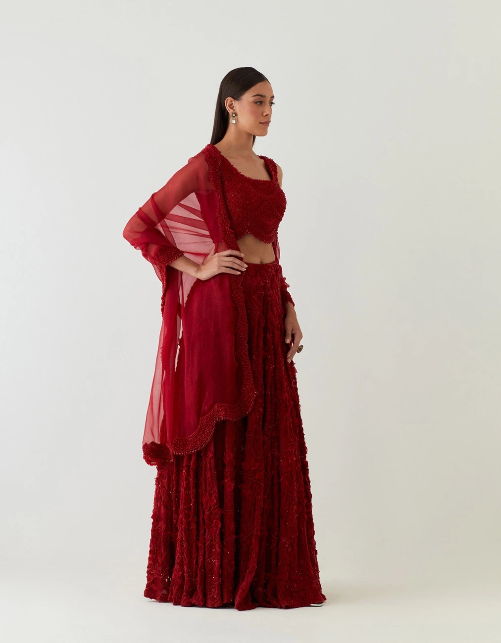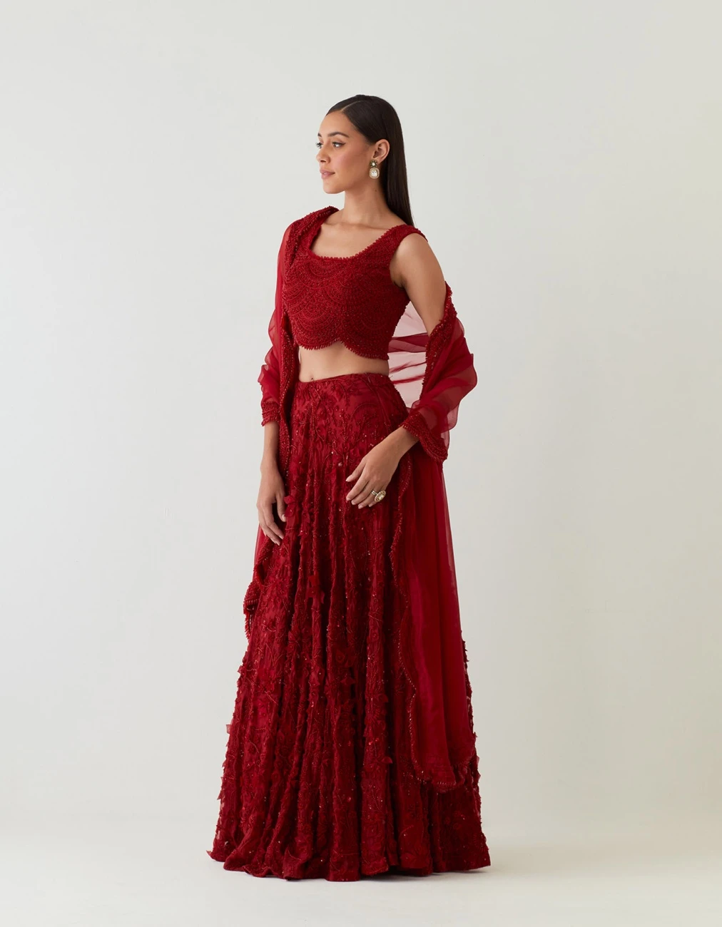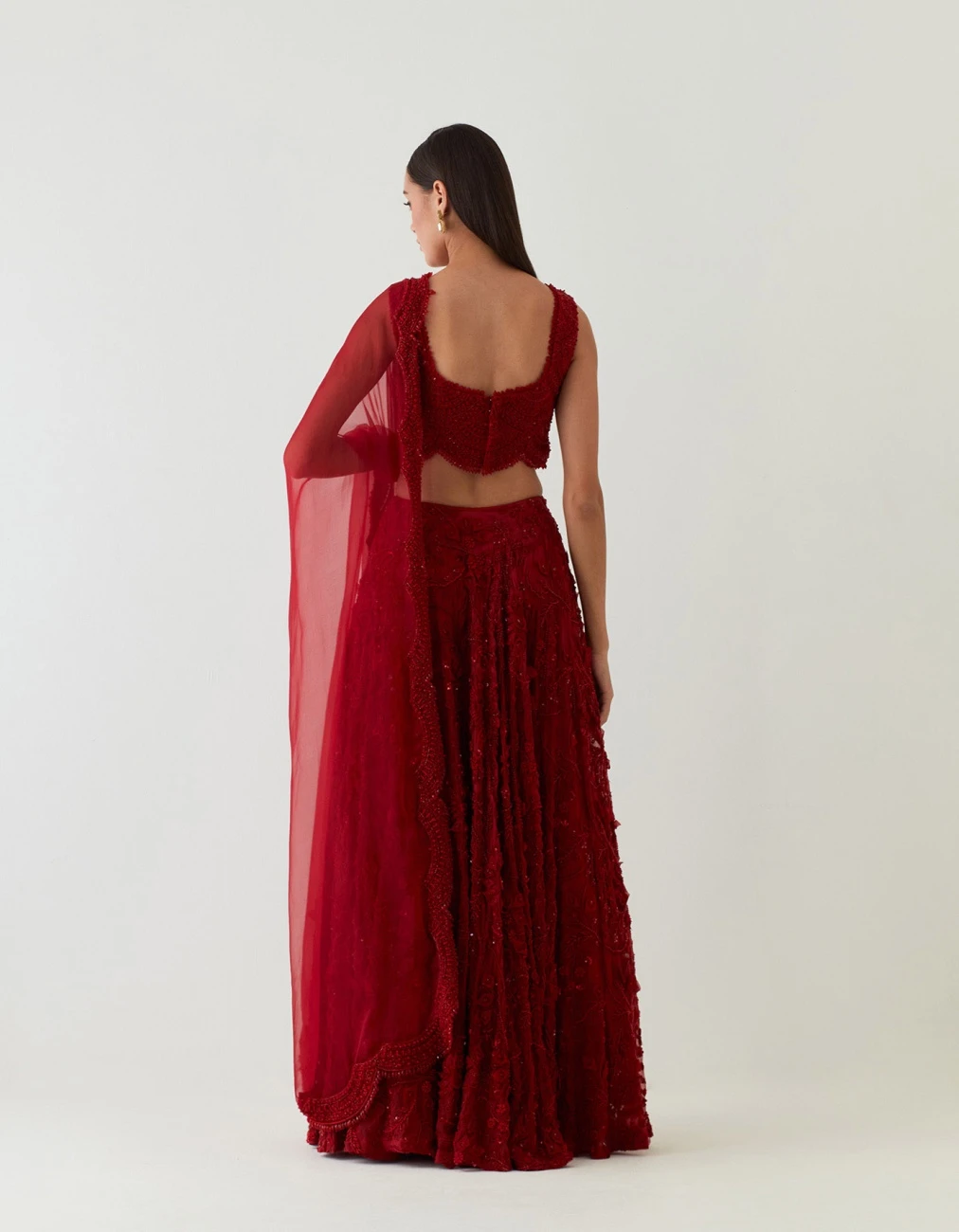 - This Stunning Red Lehenga Features A Scallop Embellished Blouse