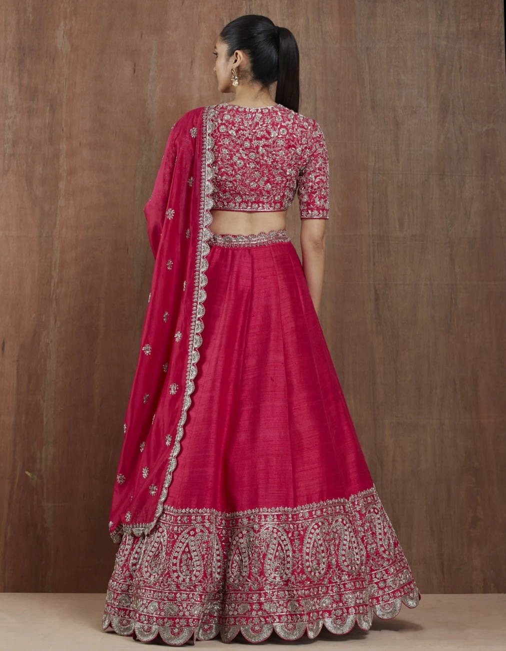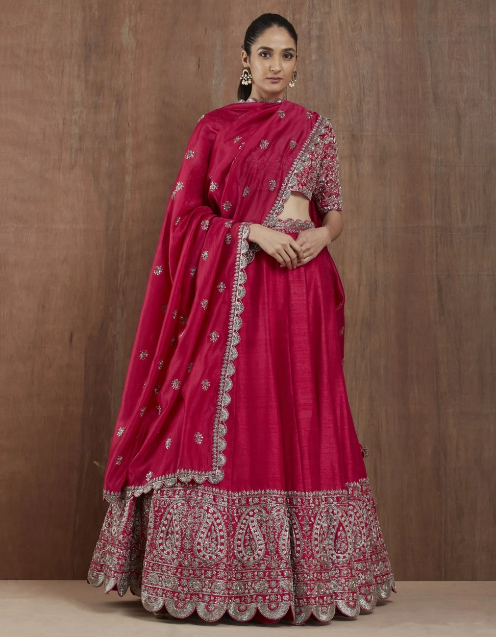 This collection of vibrant, festive-ready pieces highlight exquisite zardozi craftsmanship on rich silks