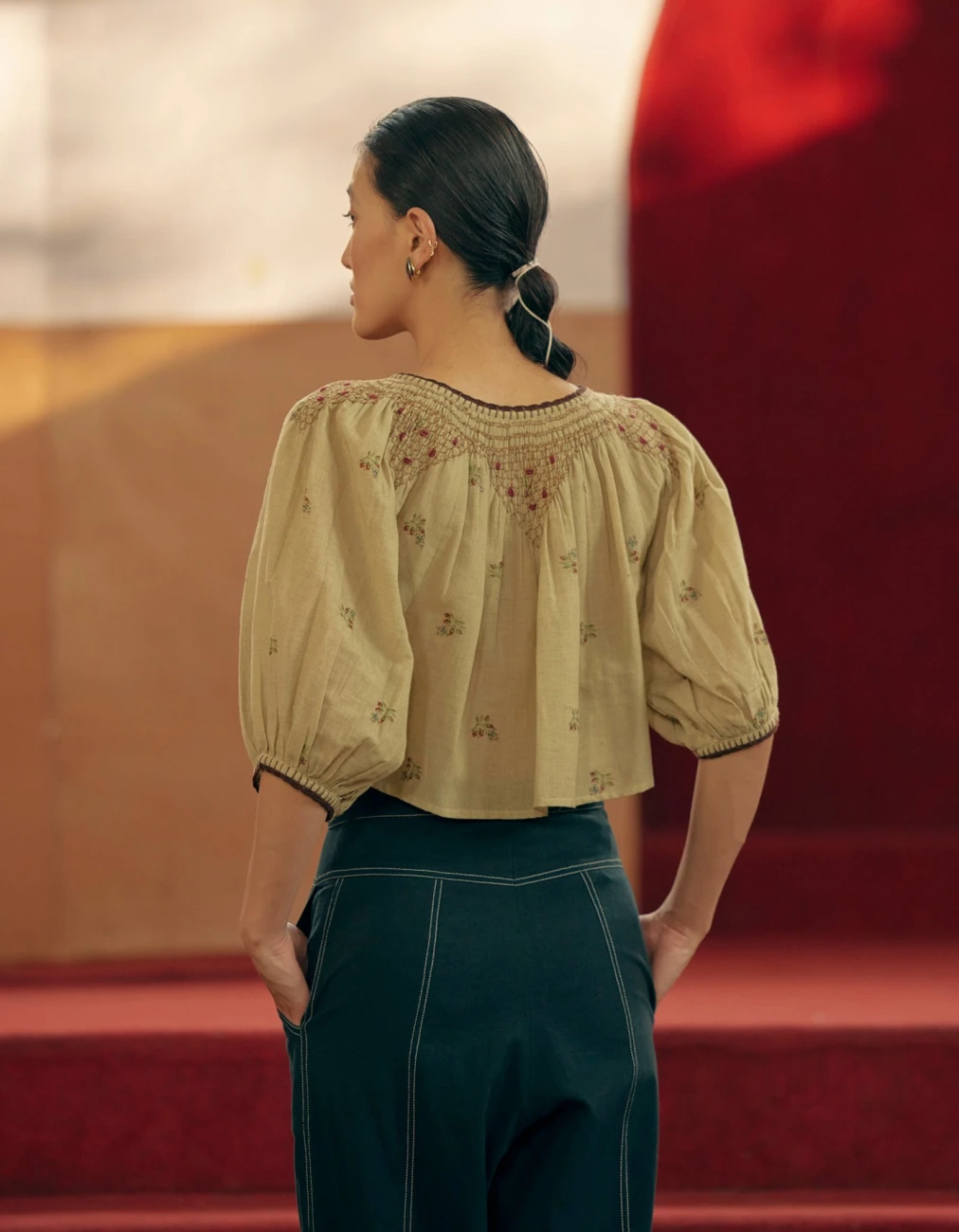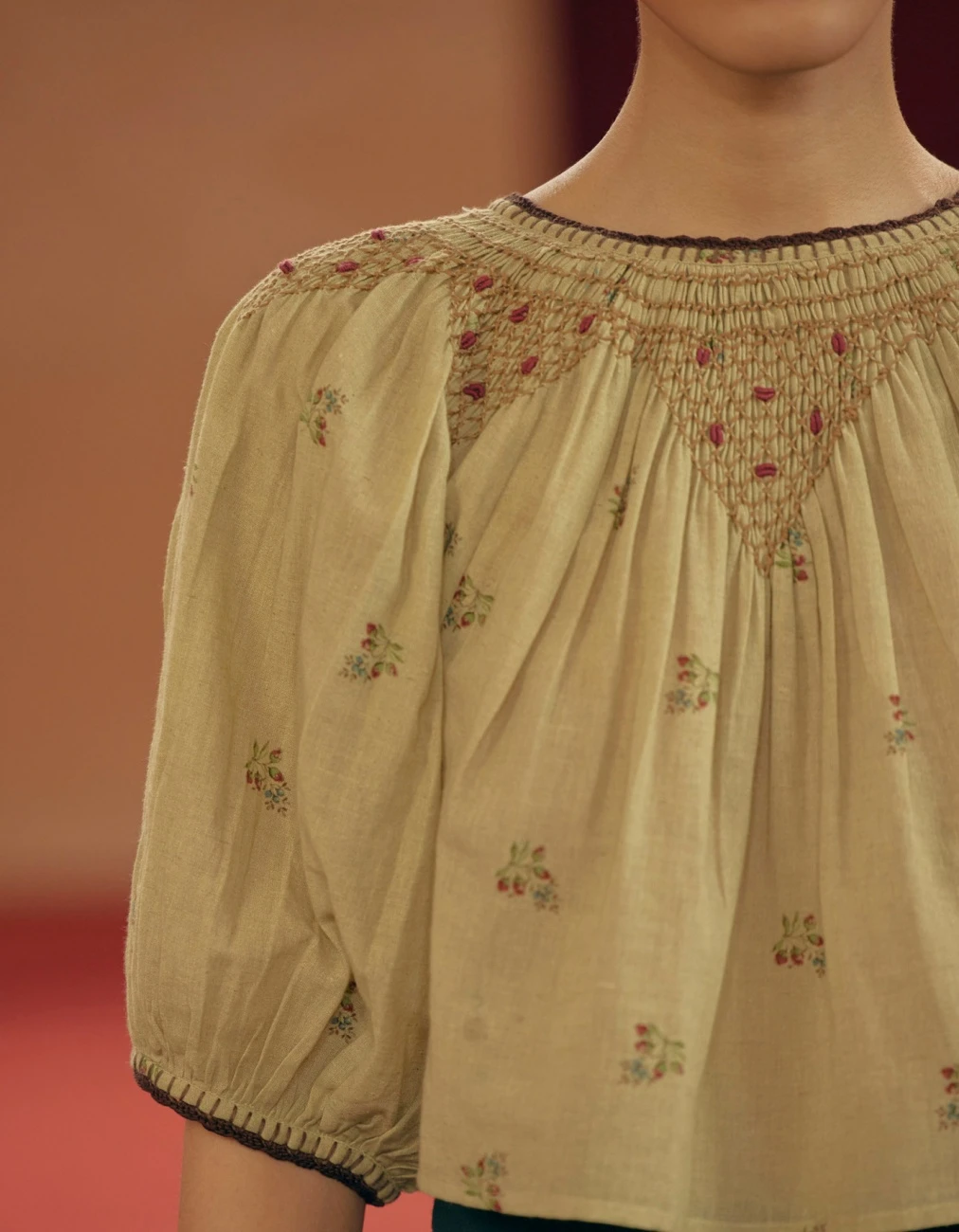 - The Rose top is made from 100% pure cotton fabric with a hand-smocked yolk