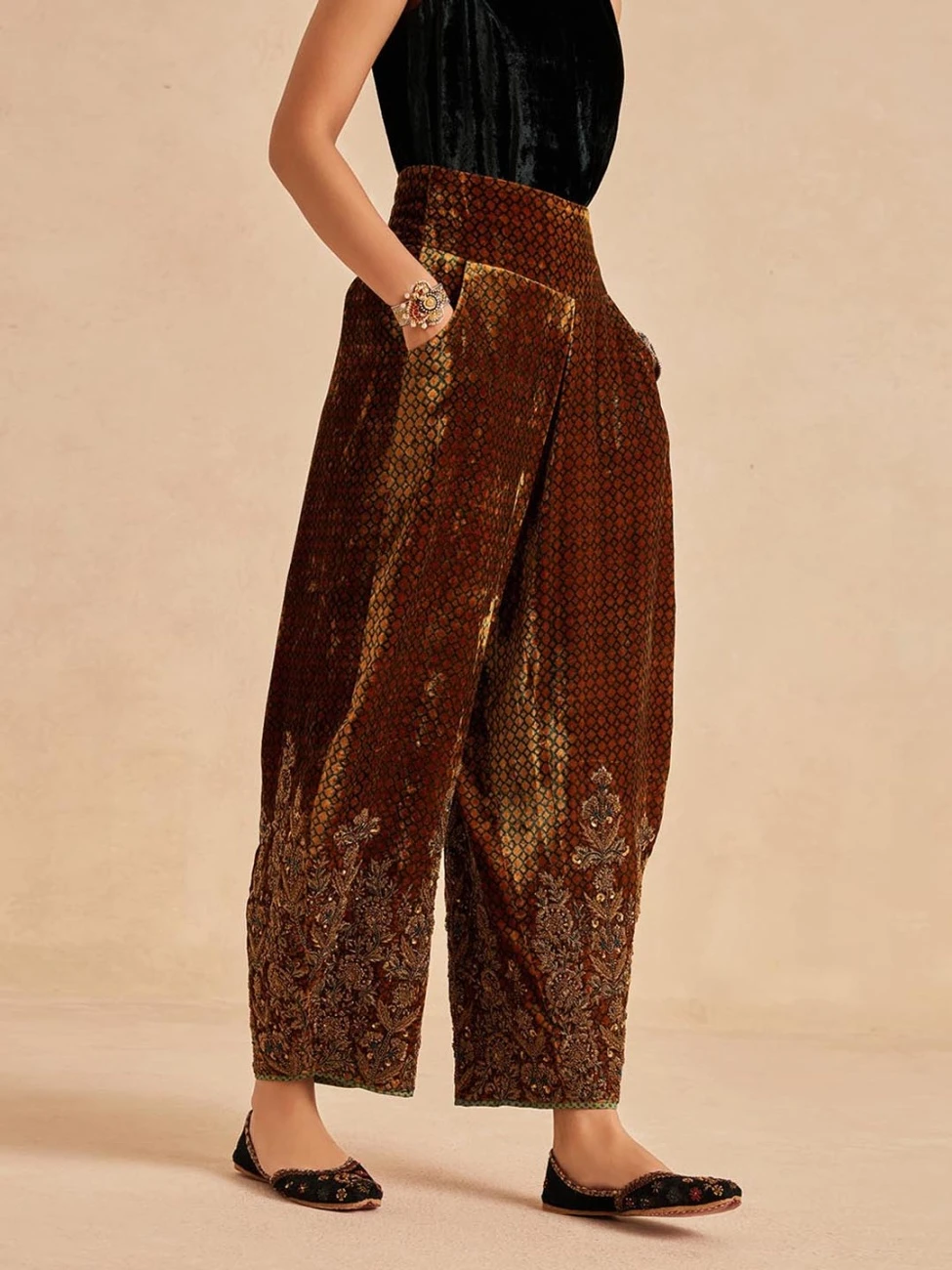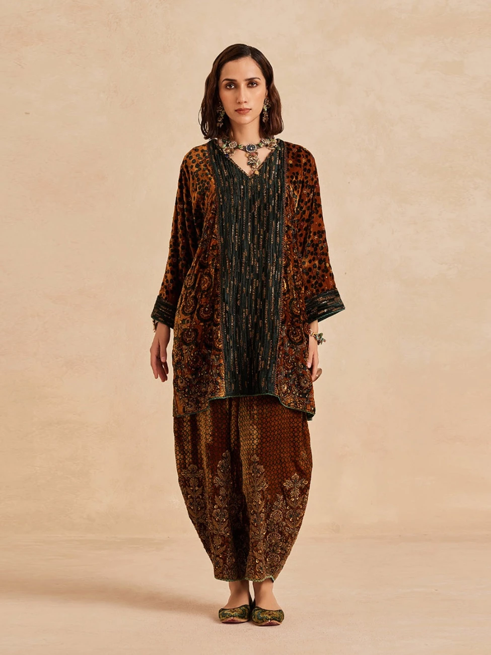 - Fabric: embroidered cowl ijar- velvet , lining – cotton chanderi, finishing – modal silk