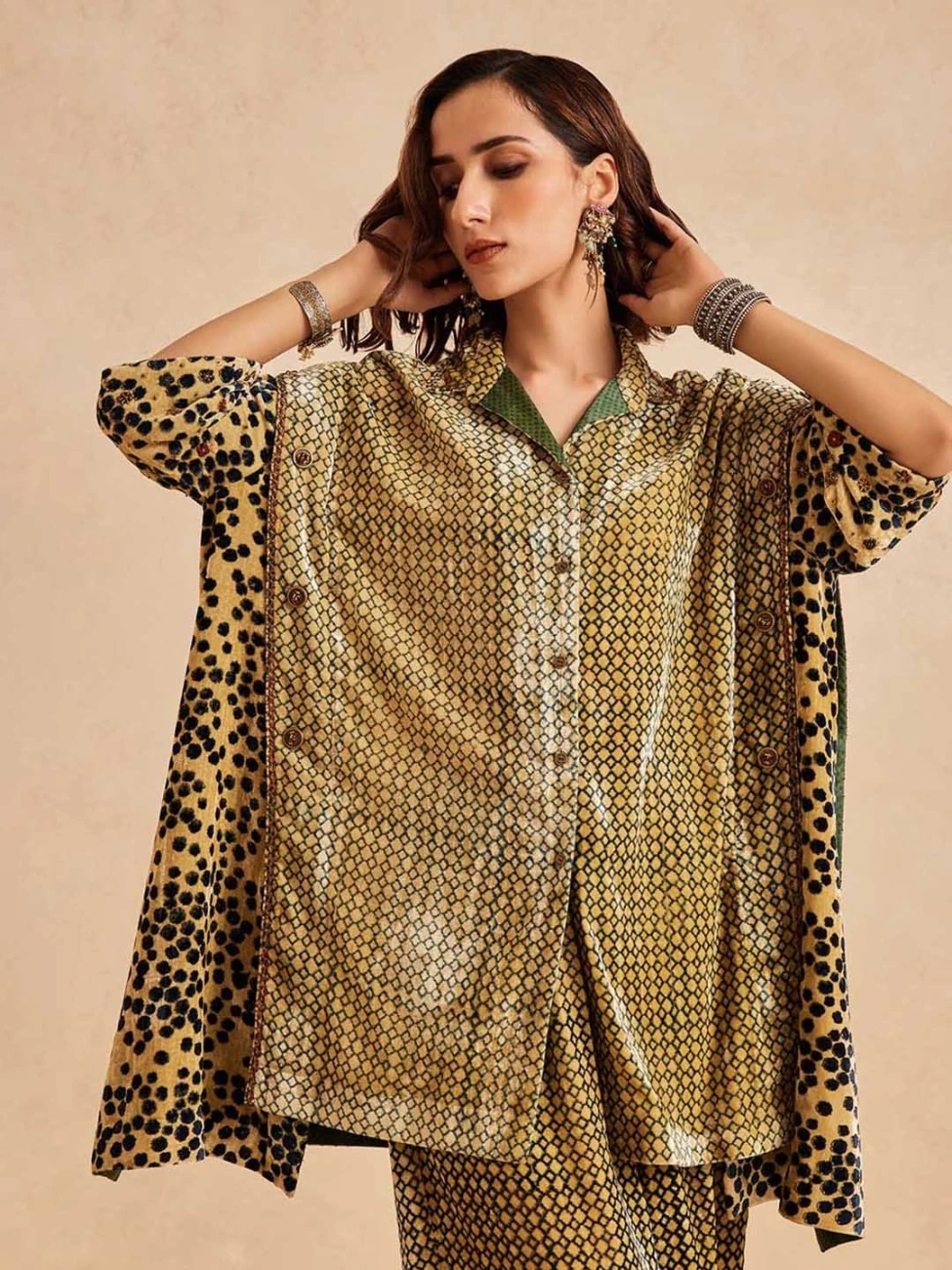 - Featuring shirt- hand-block ajrakh print using natural dyes, finished in modal silk in bagru hand-block print