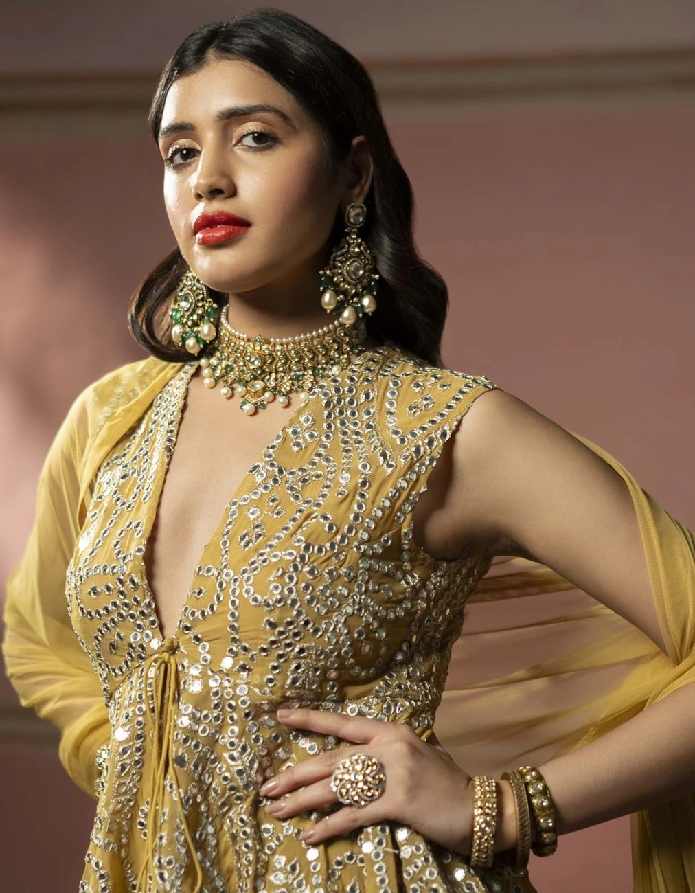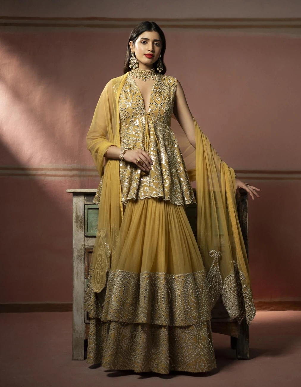 - With the floating mirror effect of jaaliwork