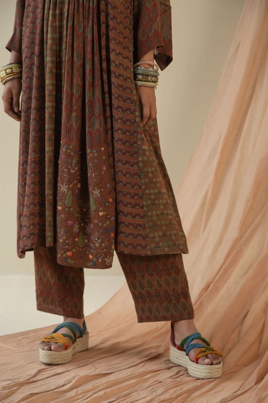 - The Whirling Dance HandinBlock Printed Pants in Brown and Green