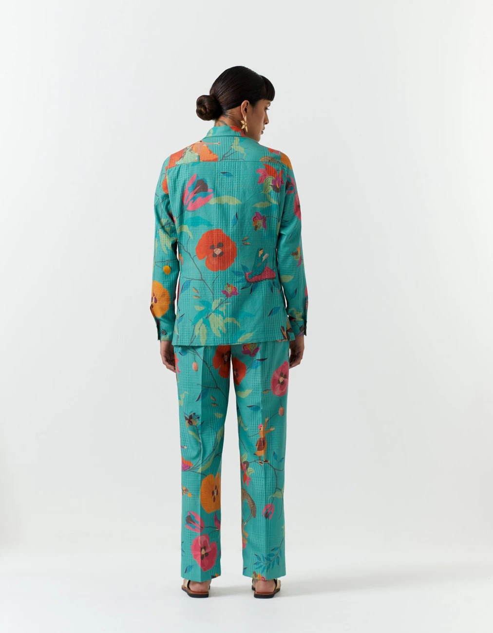 - Vineyard Cotton Silk Check Shikari Jacket In Aqua