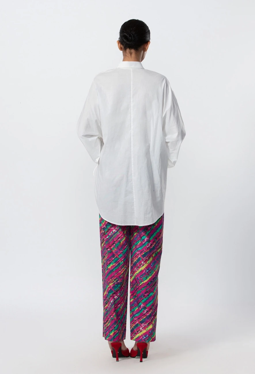 - Shirt : Batwing Oversized Side Tie Up Shirt With Intricate Mirror And Thread Hand Embroidered Motif