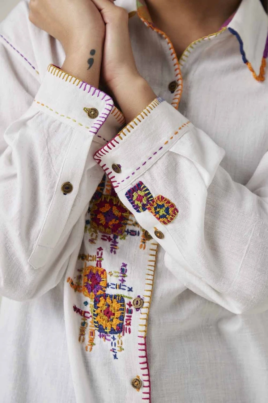 - Gul-zaar crop shirt is crafted with handwoven khadi