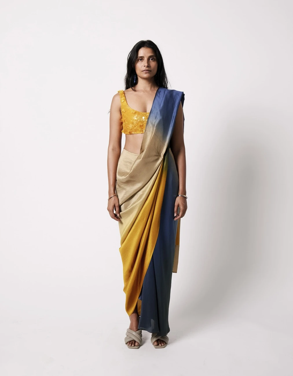 - The RiRi blouse that is hand embroidered with transparent sequins. It has a square neckline and closes on the side with a zipper. Perfect outfit for those fun boho day weddings.