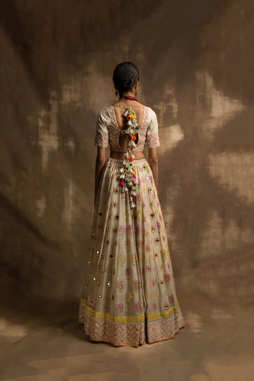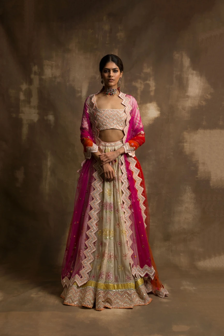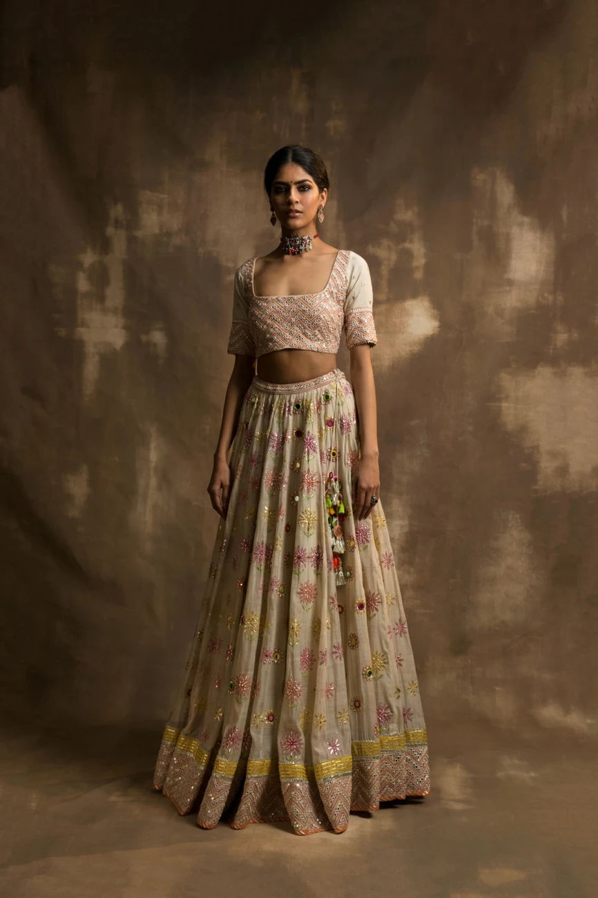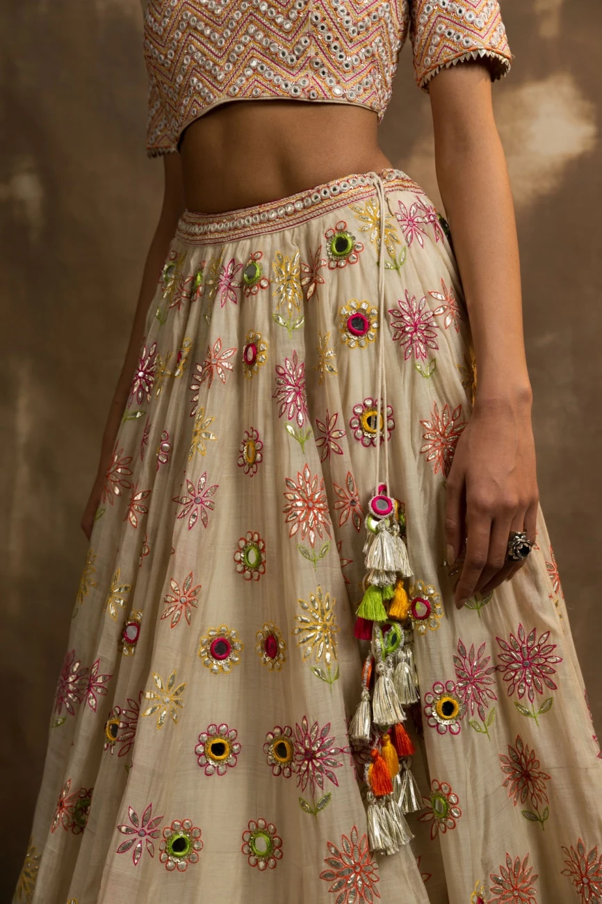 - Yunus ivory gota and mirror lehenga set